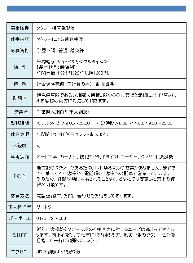 60代活躍中!!年金受給者も大歓迎です!! 他業種ドライバー経験のある方、お客様が見える運転業務で新たな楽しさ・やりがい・お客様からの「ありがとう」を感じて働いてみませんか? 【時給制乗務員も同時募集!!】
